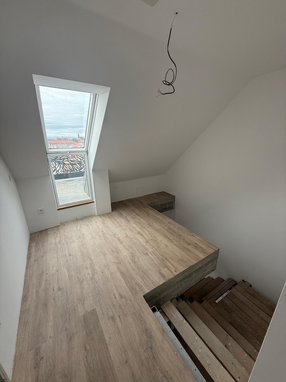 Nabízíme k prodeji prostorný byt 2+kk o celkové výměře 90,2 m², který se nachází v novostavbě bytového domu v samotném centru Českých Budějovic, na ulici Štítného. Byt je součástí moderního projektu s pouhými dvanácti bytovými jednotkami, který vyniká vysokým standardem zpracování, kvalitními materiály a výjimečnou polohou v srdci města. Dispozice bytu tvoří vstupní chodba, prostorný obývací pokoj s kuchyňským koutem, ložnice, koupelna a technická místnost se samostatným WC. K bytu náleží také dvě terasy o velikostech 14,1 m² a 17,4 m², které poskytují dostatek prostoru pro odpočinek, posezení či menší zahradní úpravy. Součástí je rovněž samostatný sklep o velikosti 3,9 m² umístěný v přízemí domu a dvě parkovací stání. Díky vynikající poloze v centru města je zde v dosahu kompletní občanská vybavenost – obchody, restaurace, školy, úřady i kulturní vyžití. Samozřejmostí je také výborná dopravní dostupnost a pohodlné spojení do všech částí města. Tento byt představuje ideální kombinaci moderního městského bydlení, nadstandardního komfortu a jedinečné lokality v samém srdci Českých Budějovic.