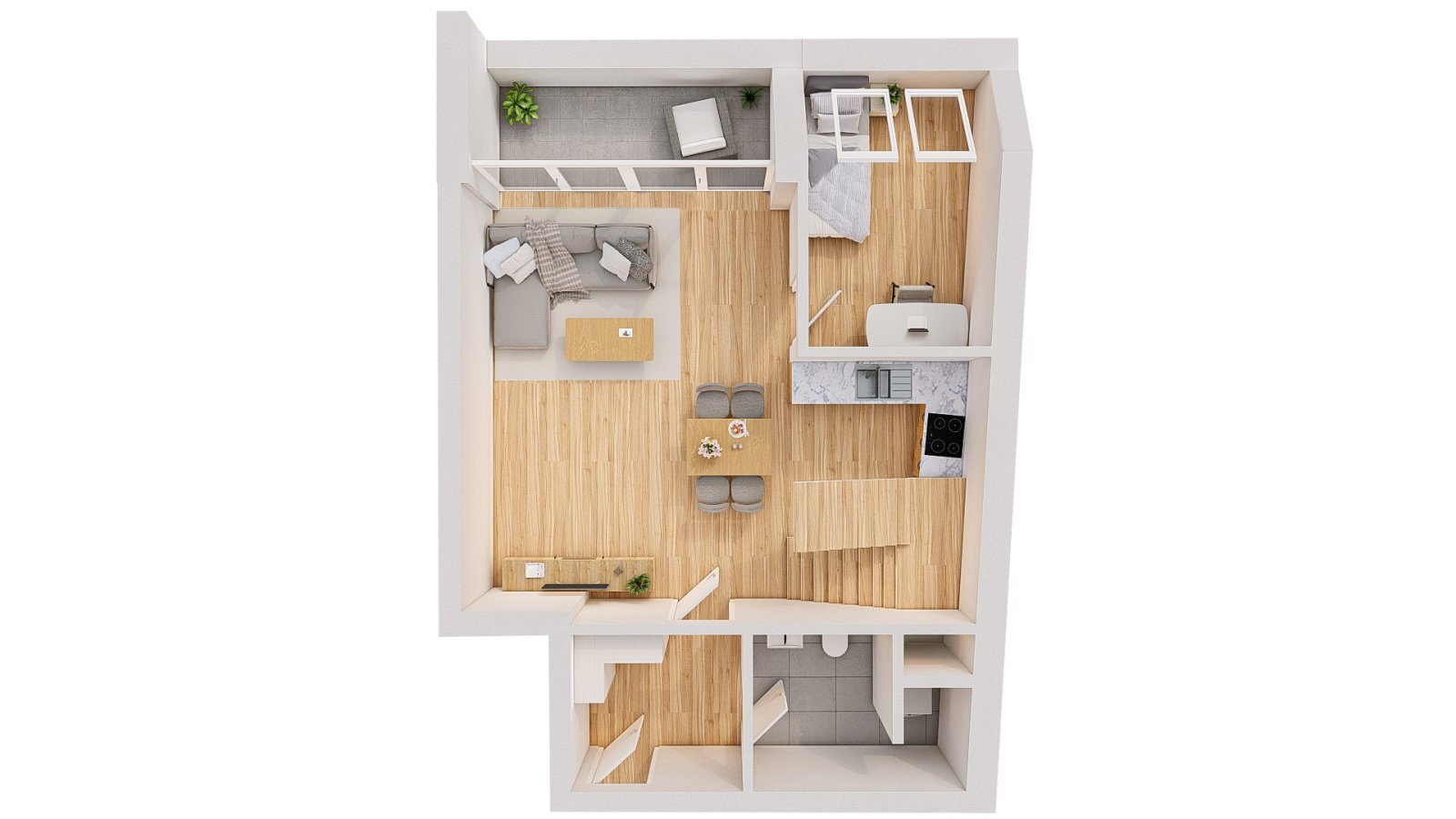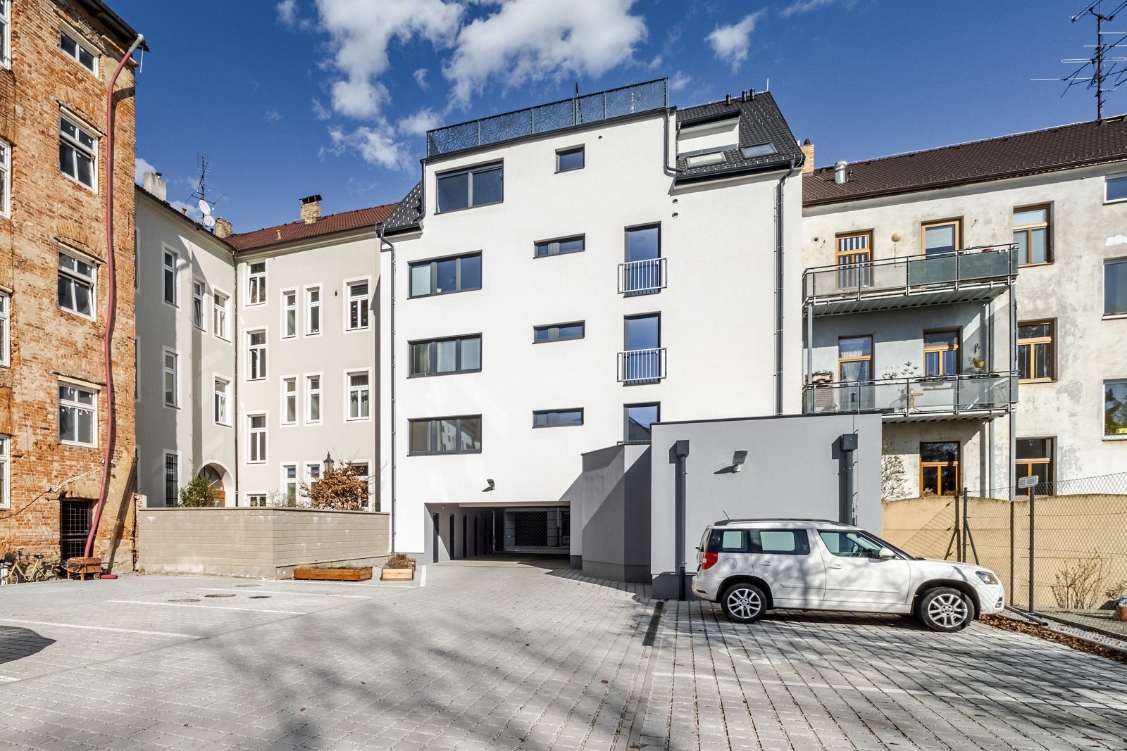 Nabízíme k prodeji moderní podkrovní byt 4+kk o celkové výměře 88,52 m², který se nachází v novostavbě bytového domu v atraktivní lokalitě v samotném centru Českých Budějovic, na ulici Štítného. Byt je součástí komorního rezidenčního projektu s pouhými dvanácti bytovými jednotkami, který klade důraz na kvalitní provedení, moderní architekturu a komfortní městské bydlení. Díky své poloze nabízí ideální spojení klidného bydlení a veškeré občanské vybavenosti na dosah. Dispozice bytu je prakticky řešena a nabízí vstupní chodbu, prostorný obývací pokoj s přípravou na kuchyňský kout, tři samostatné pokoje, dvě koupelny a vnitřní schodiště, které dodává interiéru moderní a vzdušný charakter. Umístění bytu v podkroví spolu se střešními okny zajišťuje dostatek přirozeného světla a příjemnou atmosféru v celém prostoru. Velkým benefitem jsou tři terasy o velikostech 6,12 m², 14,10 m² a 8,40 m², které poskytují ideální místo pro odpočinek, posezení s rodinou či přáteli nebo vytvoření příjemného venkovního prostoru přímo v centru města. Koupelny jsou řešeny v moderním designu s velkoformátovými obklady, vanou i sprchovým koutem a kvalitní sanitou, což zajišťuje vysoký komfort každodenního bydlení. Součástí bytu je také sklep o velikosti 3 m², umístěný v přízemí domu, který nabízí praktický úložný prostor. Parkovací stání je možné k bytu dokoupit, což je v centru města velmi praktické řešení. V docházkové vzdálenosti od domu se nachází kompletní občanská vybavenost – obchody, restaurace, kavárny, školy, úřady i kulturní instituce. Lokalita zároveň nabízí výbornou dopravní dostupnost do všech částí města. Tento byt představuje atraktivní možnost moderního rodinného bydlení v centru Českých Budějovic, ale zároveň může být také zajímavou investiční příležitostí.
