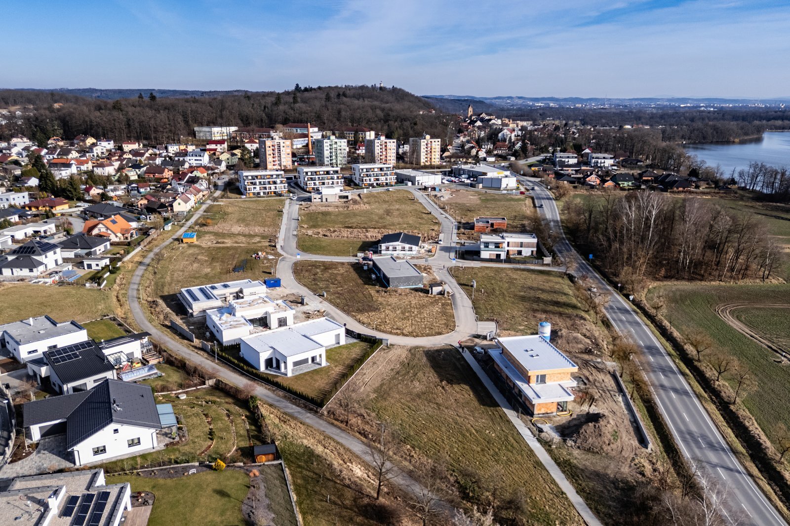 Dokončený projekt: ZTV Pod Hůrkou – Hluboká nad Vltavou V roce 2023 jsme úspěšně dokončili výstavbu inženýrských sítí a dopravní infrastruktury v rámci projektu ZTV Pod Hůrkou, který přinesl 103 nových stavebních parcel v jedné z nejžádanějších lokalit jižních Čech – Hluboké nad Vltavou. Projekt byl realizován v několika etapách a zahrnoval kompletní zasíťování pozemků, výstavbu komunikací, chodníků a veřejného osvětlení. Důraz byl kladen nejen na kvalitu provedení, ale také na celkové urbanistické řešení a návaznost na stávající zástavbu. Lokalita Pod Hůrkou vyniká výbornou dostupností, krásným okolím a kompletní občanskou vybaveností, což z ní činí ideální místo pro moderní a klidné bydlení.